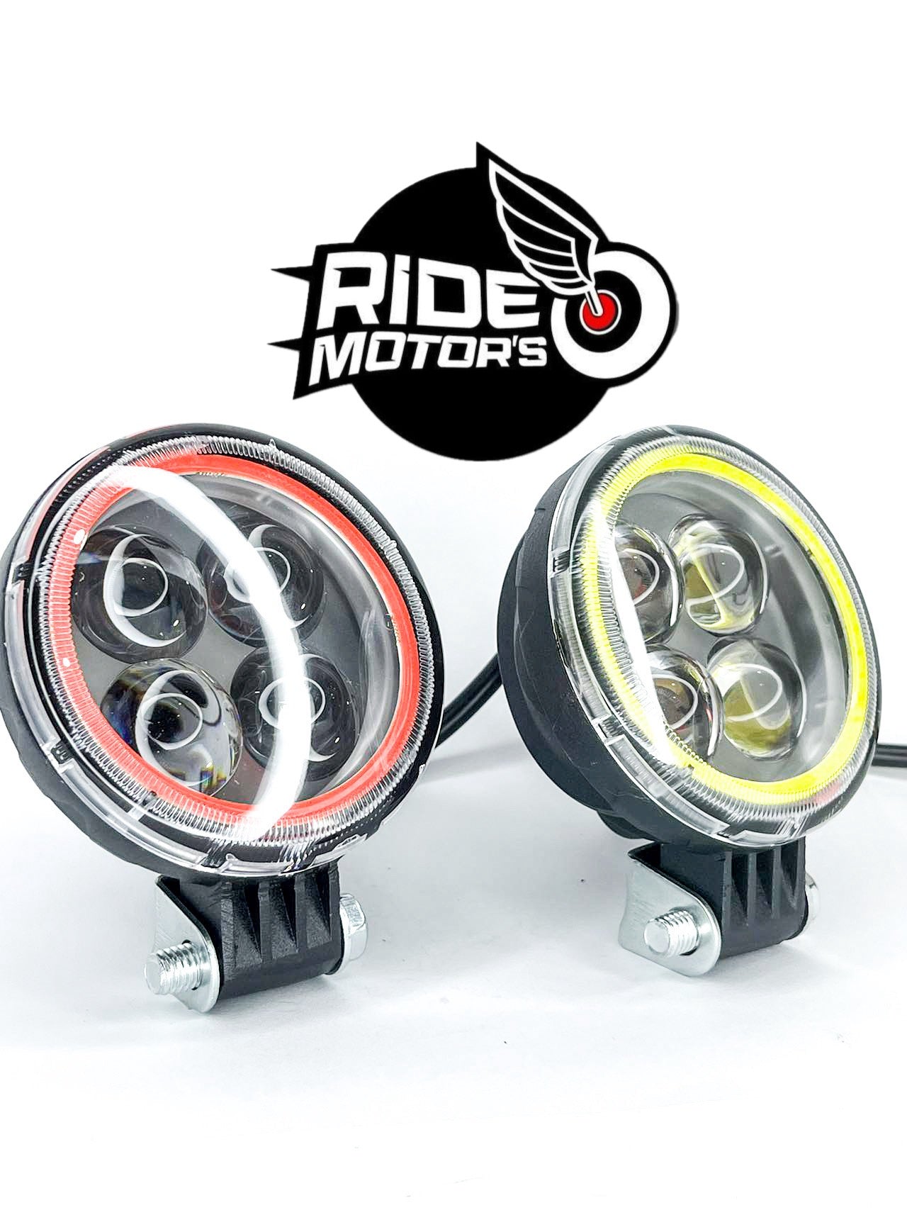 EXPLORADORA PARA MOTO REDONDA METALICA 4 LUPAS LENTICULARES, CON OJO DE ANGEL COLOR BLANCO, ROJO O AZUL, CON LUZ PRINCIPAL FIJA MEDIDA ALTO:8CM ANCHO:8CM LARGO:4CMPOTENCIA DE LED: 12 W, RANGO A PRUEBA DE AGUA: IP 67Color Temperatura: 6000-6500Kvoltaje: 10-30VMaterial Aluminio. COLOR OJO DE ANGEL; BLANCO,AZUL Y ROJO