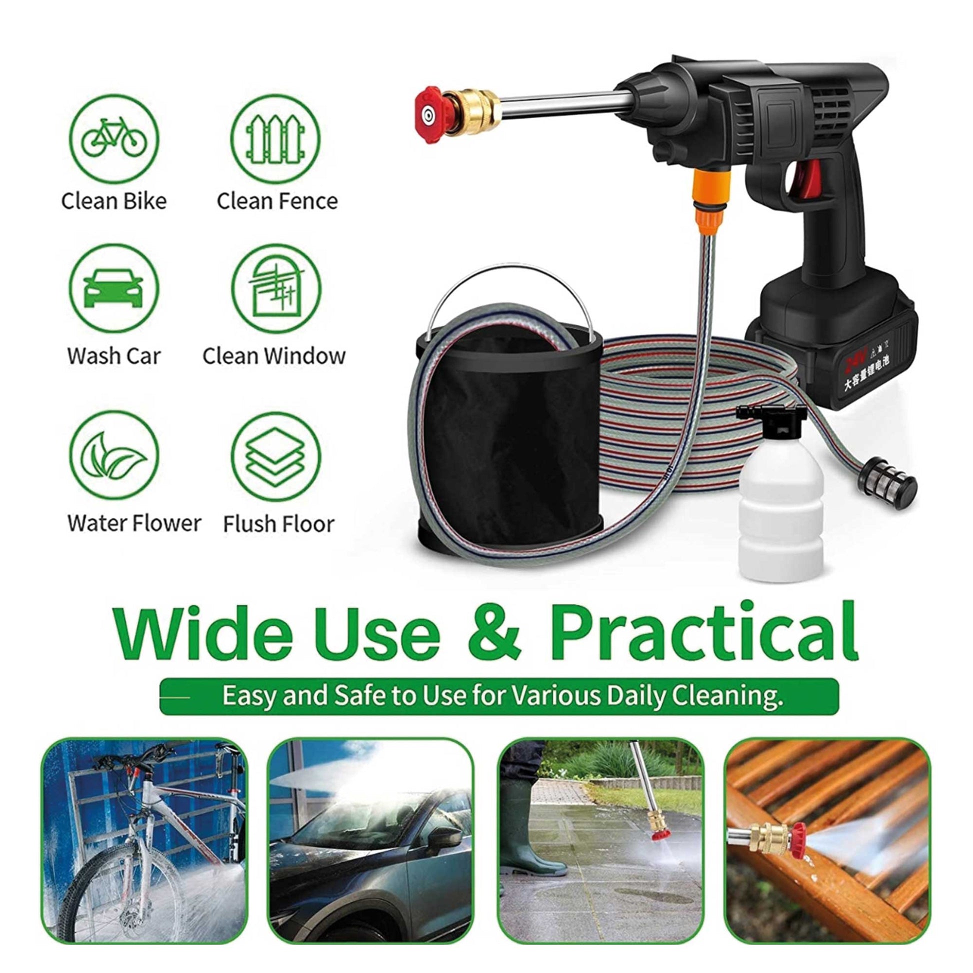 🔹 Potencia de 48V, proporcionando presión de agua impresionante para una limpieza profunda.