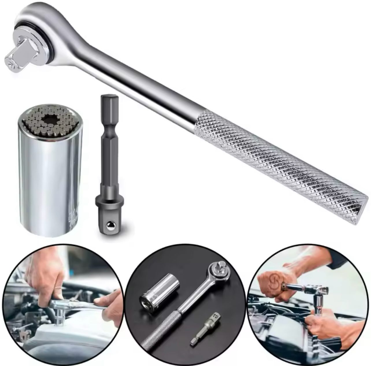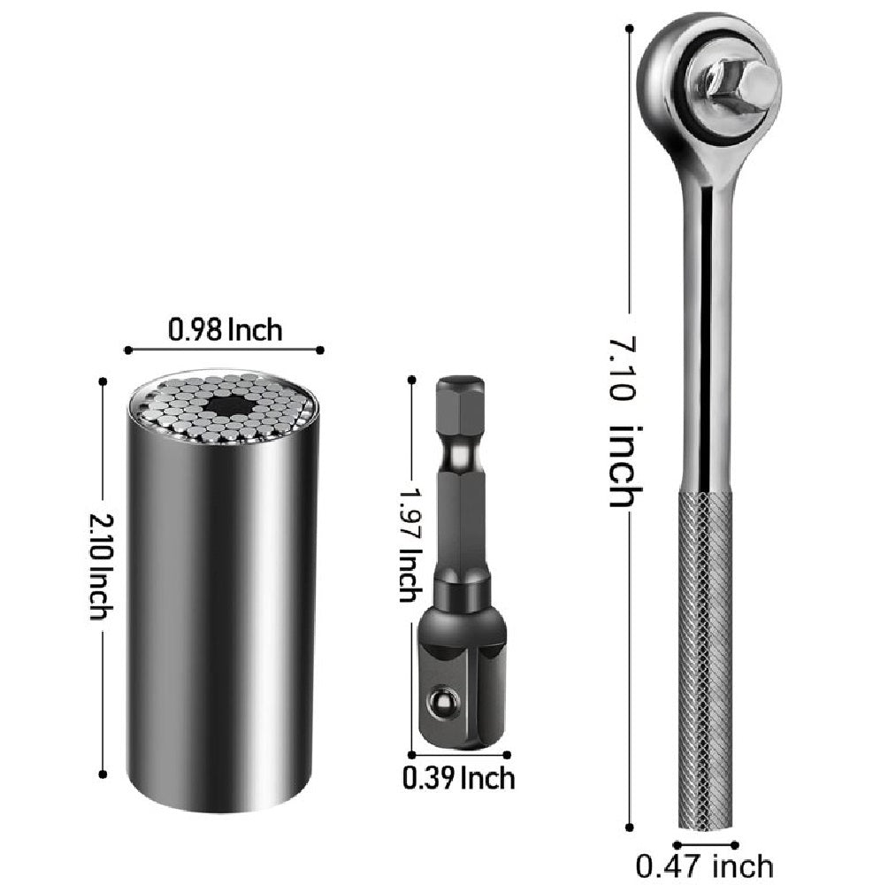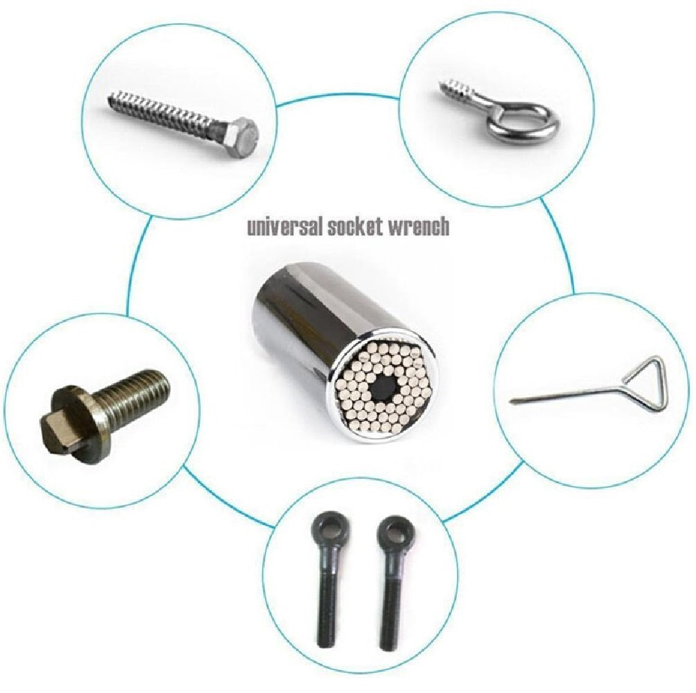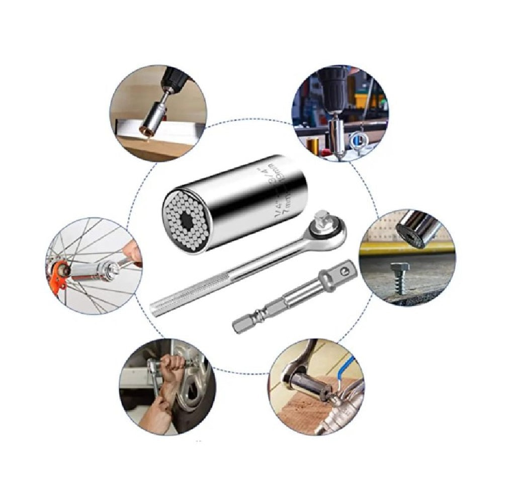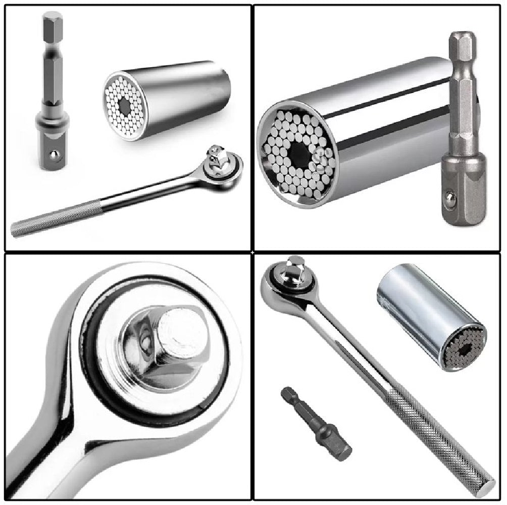 🔹 Enchufe universal de 6 puntos, ideal para sujetar diferentes tipos de tuercas y tornillos.