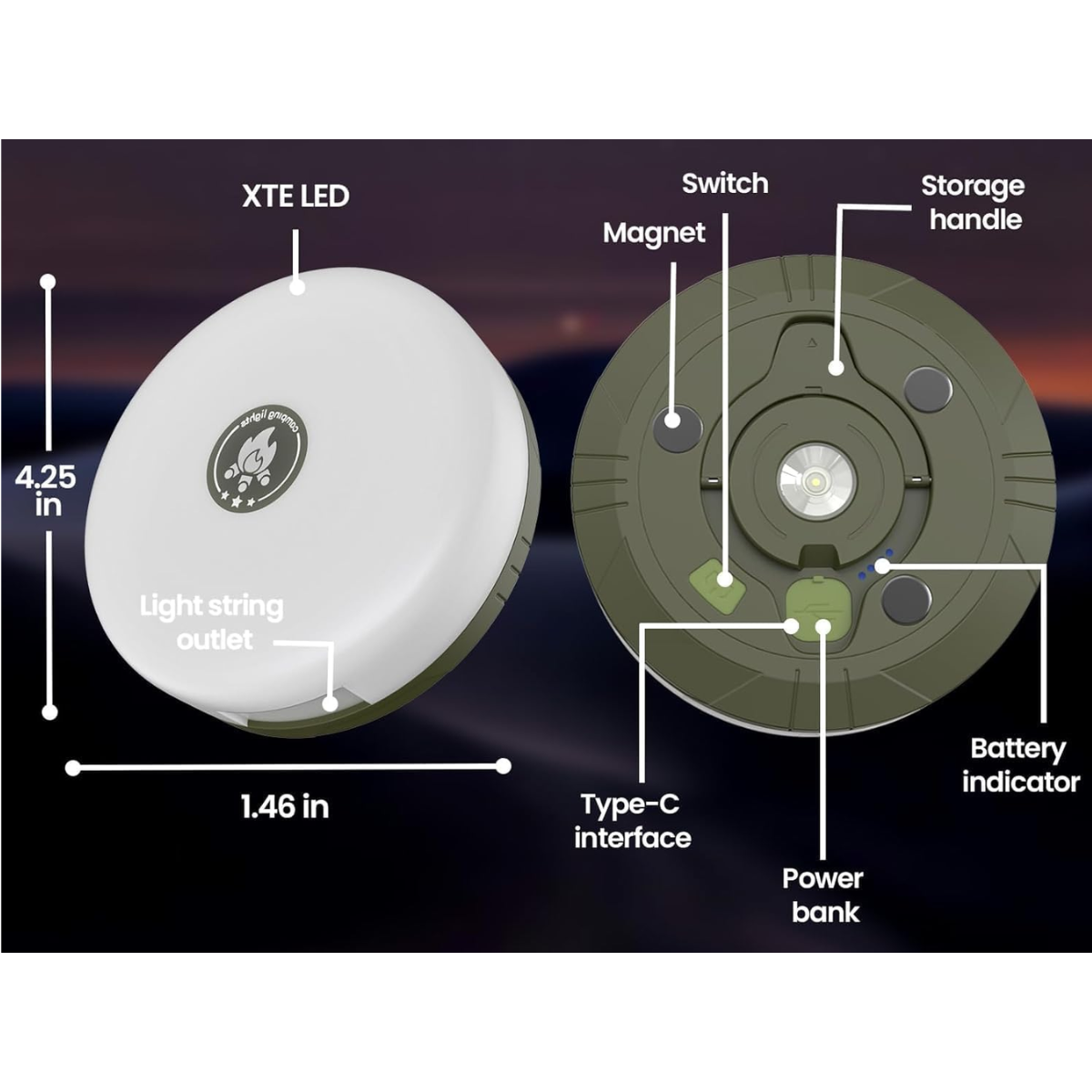 4 en 1: luz de camping, linterna, luz de emergencia y guirnalda decorativa.