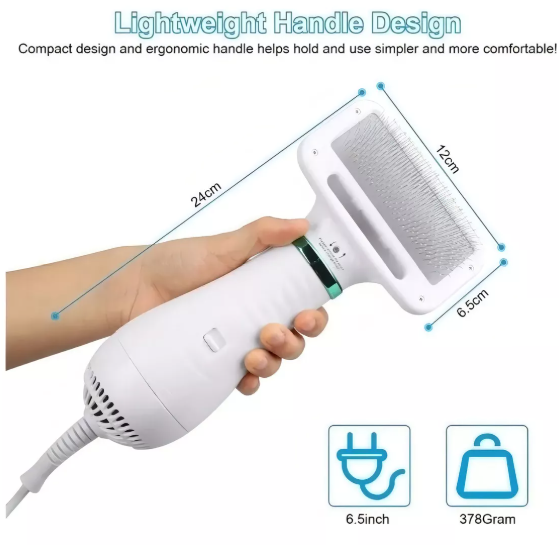 Diseñado especialmente para perros y gatos de raza pequeña a mediana, este cepillo secador es la herramienta perfecta para el cuidado en casa. Con solo un paso, ahorras tiempo, energía y evitas el estrés que provocan los secadores ruidosos o los cepillos incómodos.